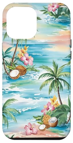 Tropical Beach Pattern Palm Tree Coconut Hibiscus Summer Case for iPhone 12/12 Pro