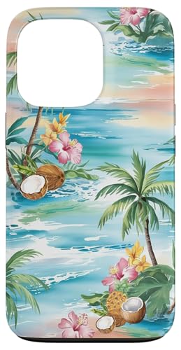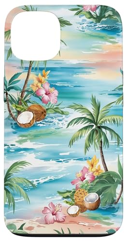 Tropical Beach Pattern Palm Tree Coconut Hibiscus Summer Case for iPhone 13 Pro