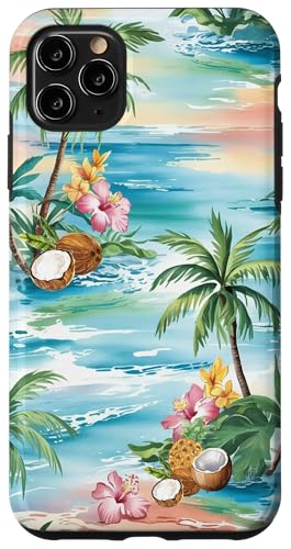 Tropical Beach Pattern Palm Tree Coconut Hibiscus Summer Case for iPhone 11 Pro