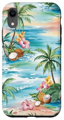 Tropical Beach Pattern Palm Tree Coconut Hibiscus Summer Case for iPhone XR