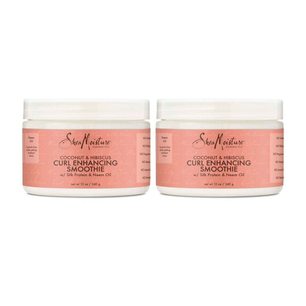 SheaMoisture Coconut & Hibiscus Curl Enhancing Smoothie For Curly Hair Care, Frizz Control, Curl Defining Cream Pack Of 2