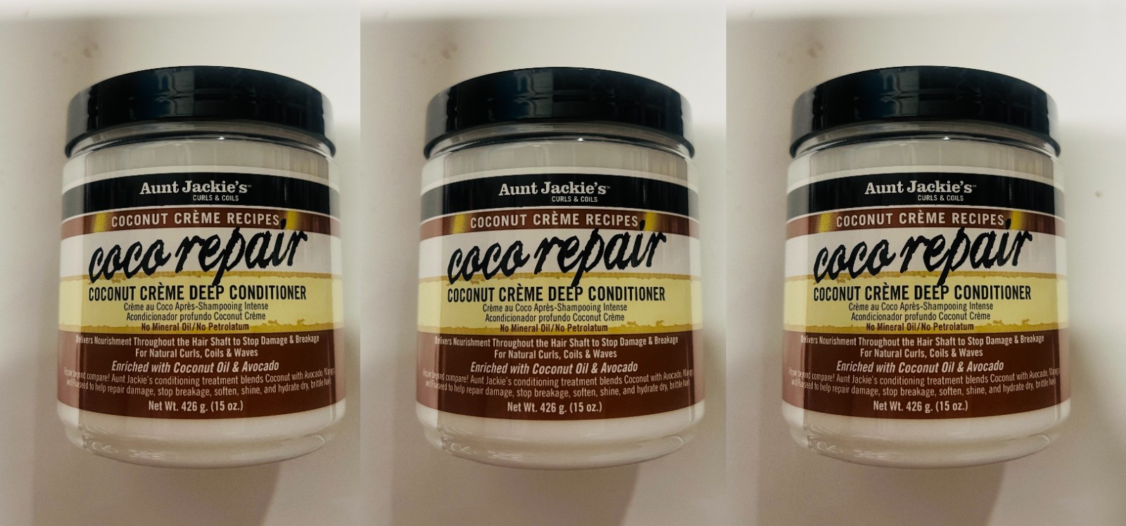 3x Aunt Jackie's Coco Repair Coconut Cream Deep Hair Conditioner 426g