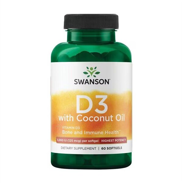 Swanson D3 with Coconut Oil 5000IE 60 Capsules
