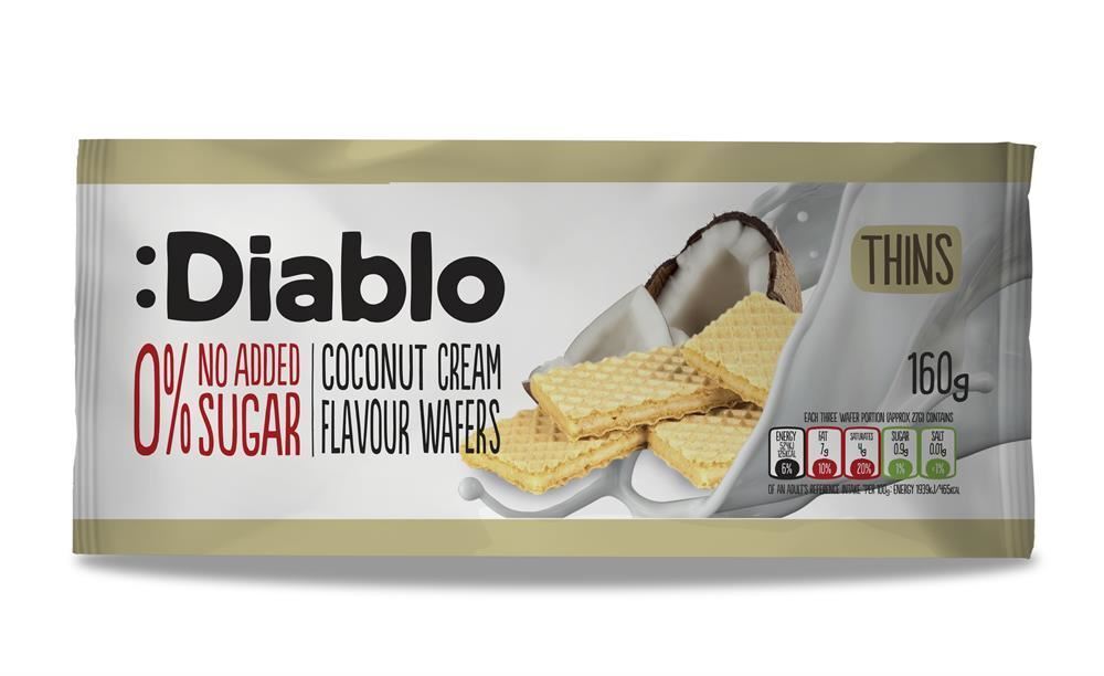 Diablo Sugar Free No Added Sugar Coconut Cream Wafer 160g (Pack of 2)