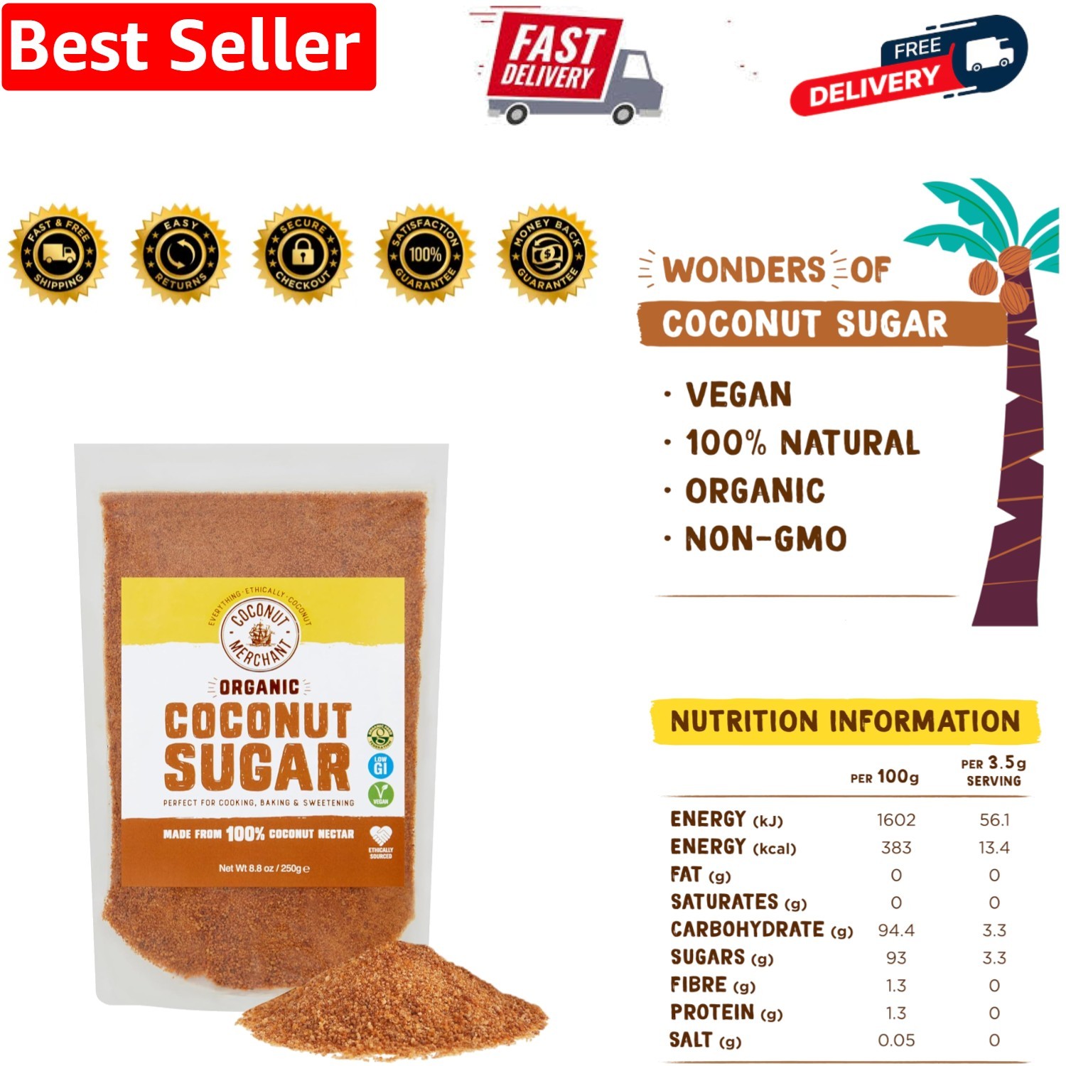 Organic Coconut Sugar 250g | Healthy Natural Sugar | Low GI Unrefined Brown S...