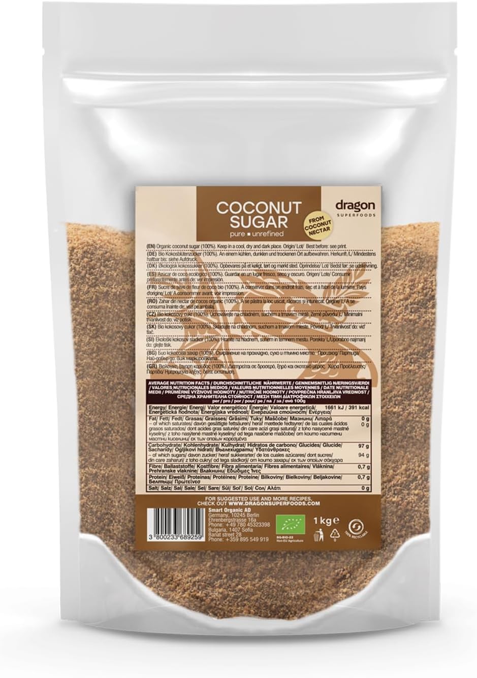 Dragon Superfoods Coconut Sugar - 100% Organic, Bio, Vegan and Gluten Free - 1k