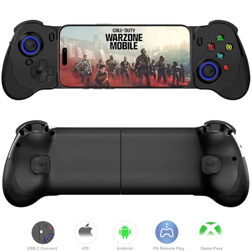 USB C Mobile Gaming Controller for iPhone 15/iPhone 16 Series & Android, PS Remote Player Gamepad for PS5/PS4/Xbox/PC,Cloud Gaming Joystick,Hall Joysticks/Hall Trigger, COD,PUBG,Genshin Impact (Black)