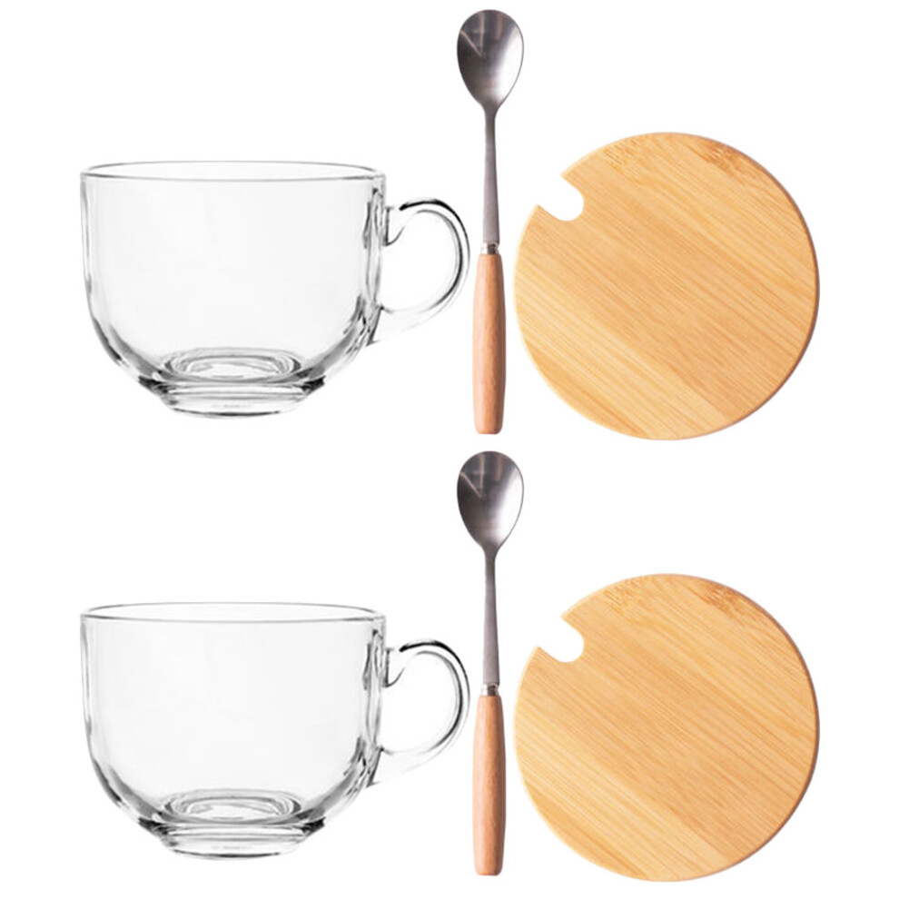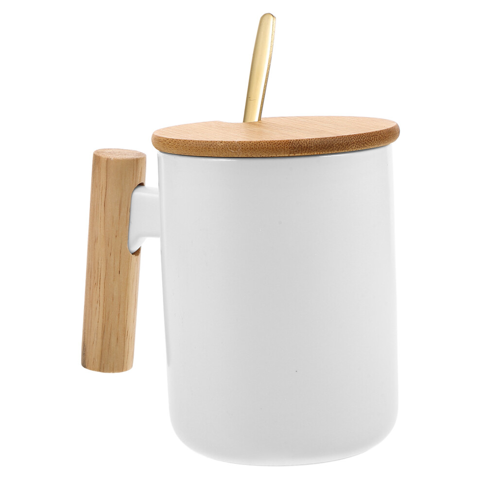 2 Sets Ceramic Coffee Mug With Wooden Handle Lid And Spoon