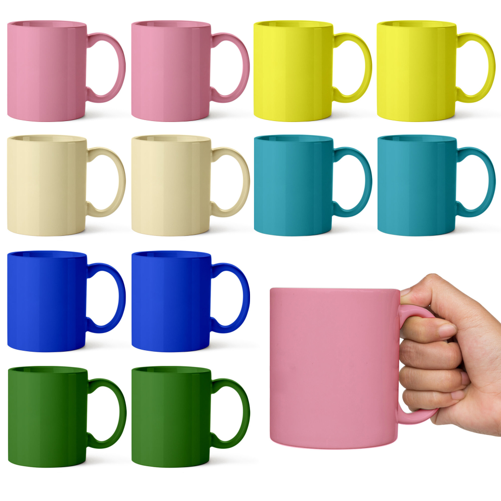 6 Colours Assorted Mugs 330ml 12PK for Coffee, Tea, Hot Choco Mug sets