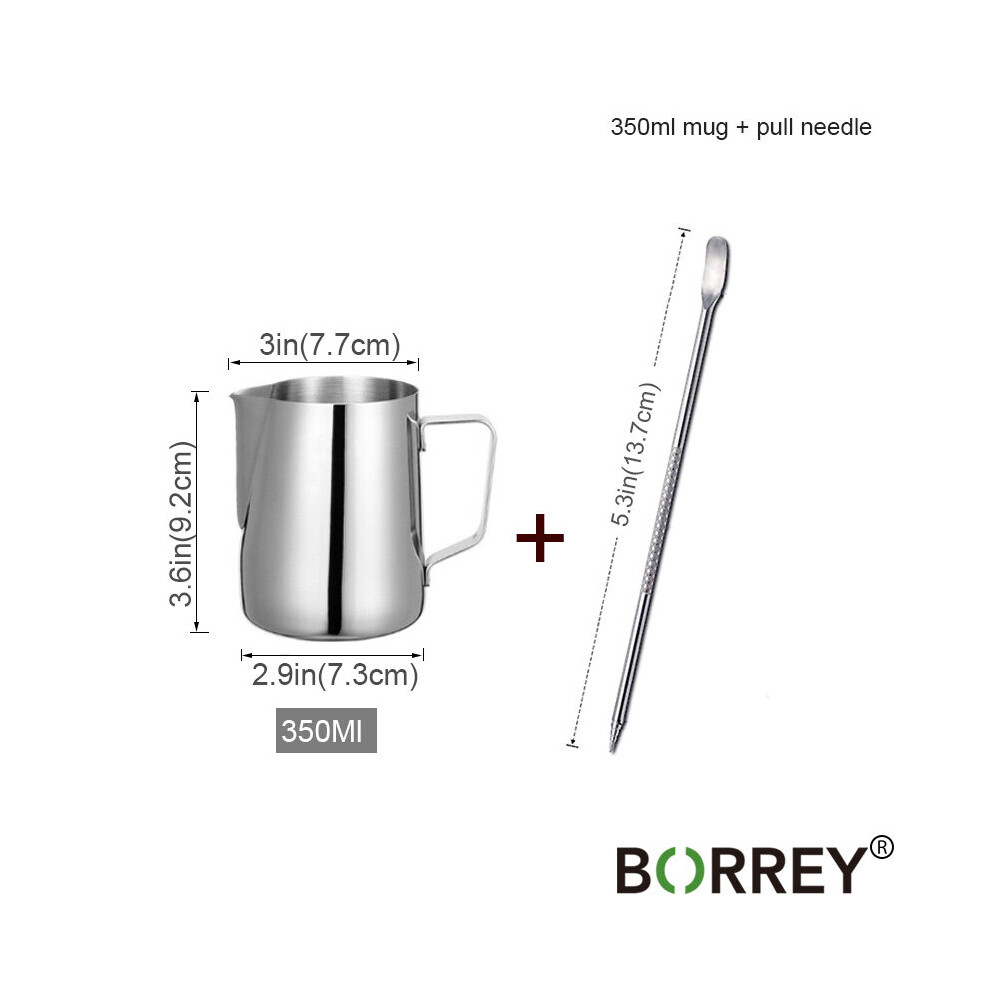 (a-350Ml Sets) BORREY Stainless Steel Coffee Pitcher Mug Milk Frothing Pitcher Latte Art Steam Pitchers Milk Cream Jug Cup With Decorating Pen