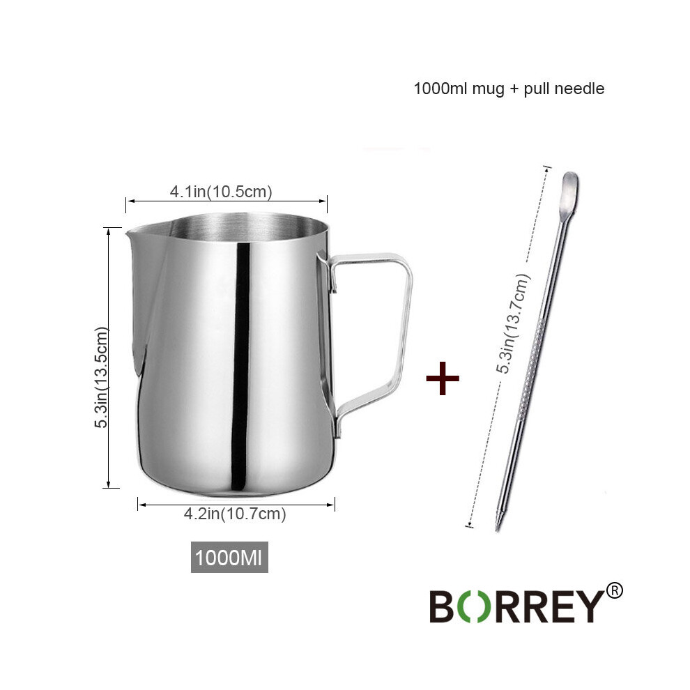 (a-1000Ml Sets) BORREY Stainless Steel Coffee Pitcher Mug Milk Frothing Pitcher Latte Art Steam Pitchers Milk Cream Jug Cup With Decorating Pen
