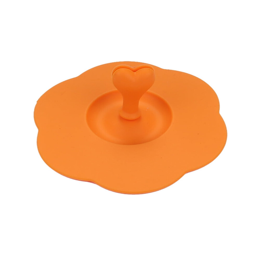 6 Sets| Heart Silicone Leakproof Coffee Mug Suction Lid Cap Airtight Seal Cup Cover, Dustproof and Splashproof Silicone Cup Lid, Orange, Orange