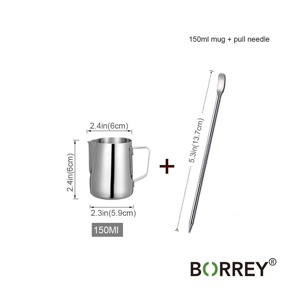 (a-150Ml Sets) BORREY Stainless Steel Coffee Pitcher Mug Milk Frothing Pitcher Latte Art Steam Pitchers Milk Cream Jug Cup With Decorating Pen
