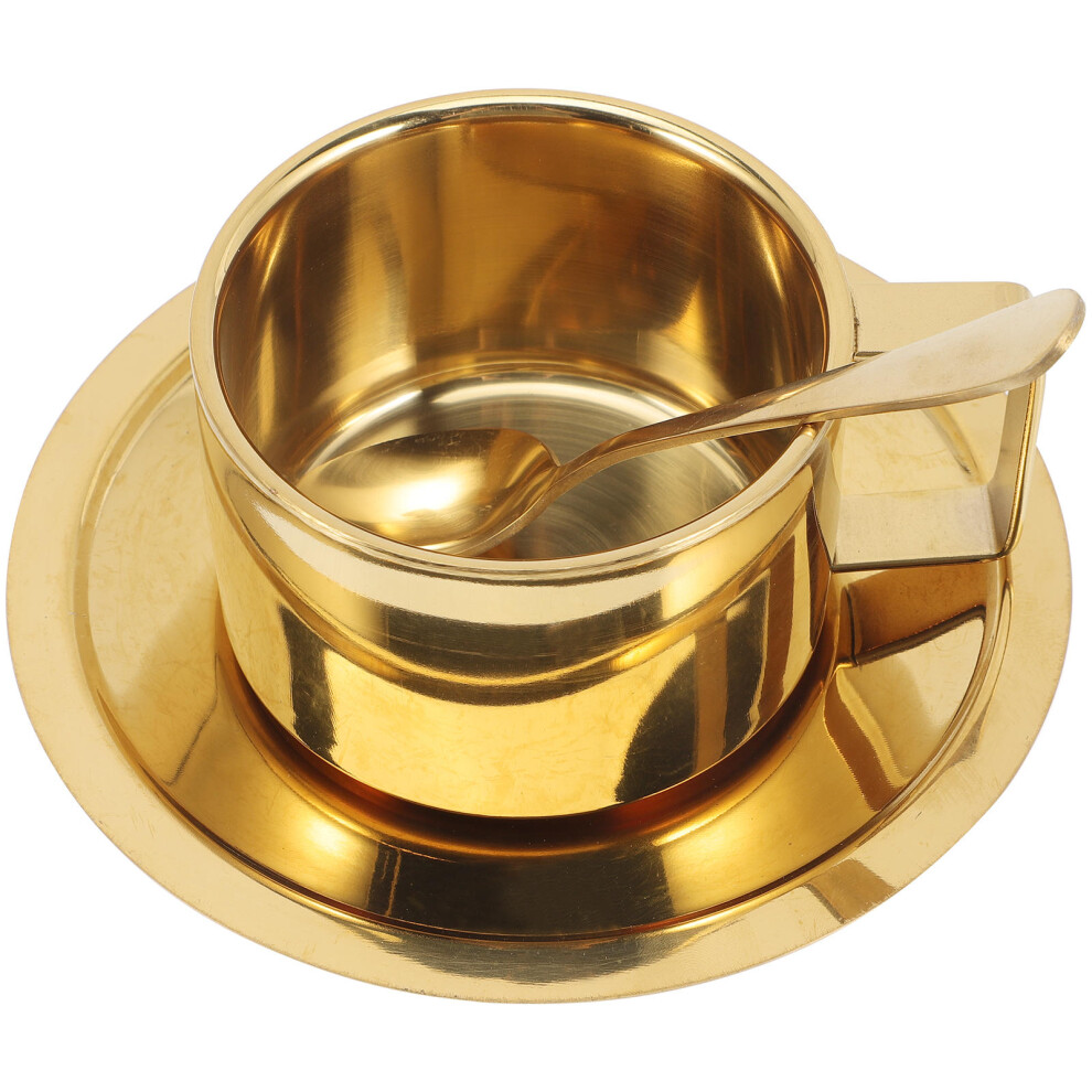 5 Sets Stainless Steel Coffee Mug With Spoon And Saucer