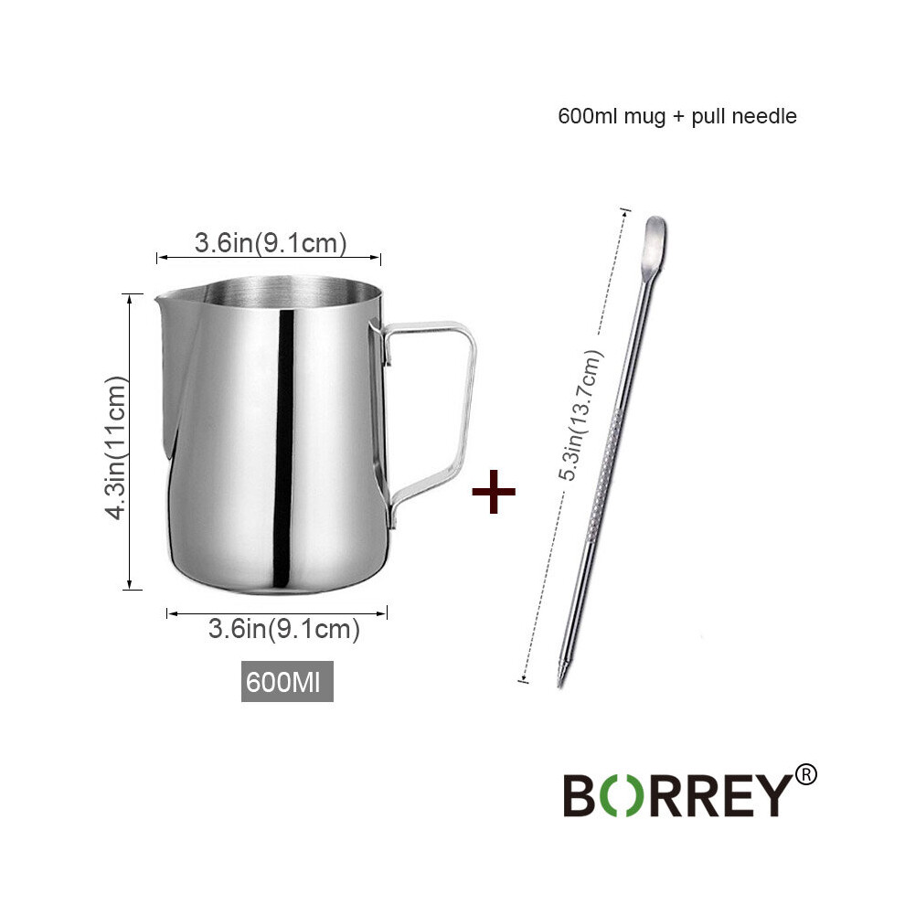 (a-600Ml Sets) BORREY Stainless Steel Coffee Pitcher Mug Milk Frothing Pitcher Latte Art Steam Pitchers Milk Cream Jug Cup With Decorating Pen