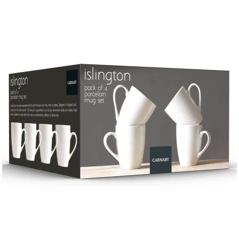 Carnaby White Porcelain Mugs Set of 4 Ceramic Coffee & Tea Kitchen Mug Gift Sets