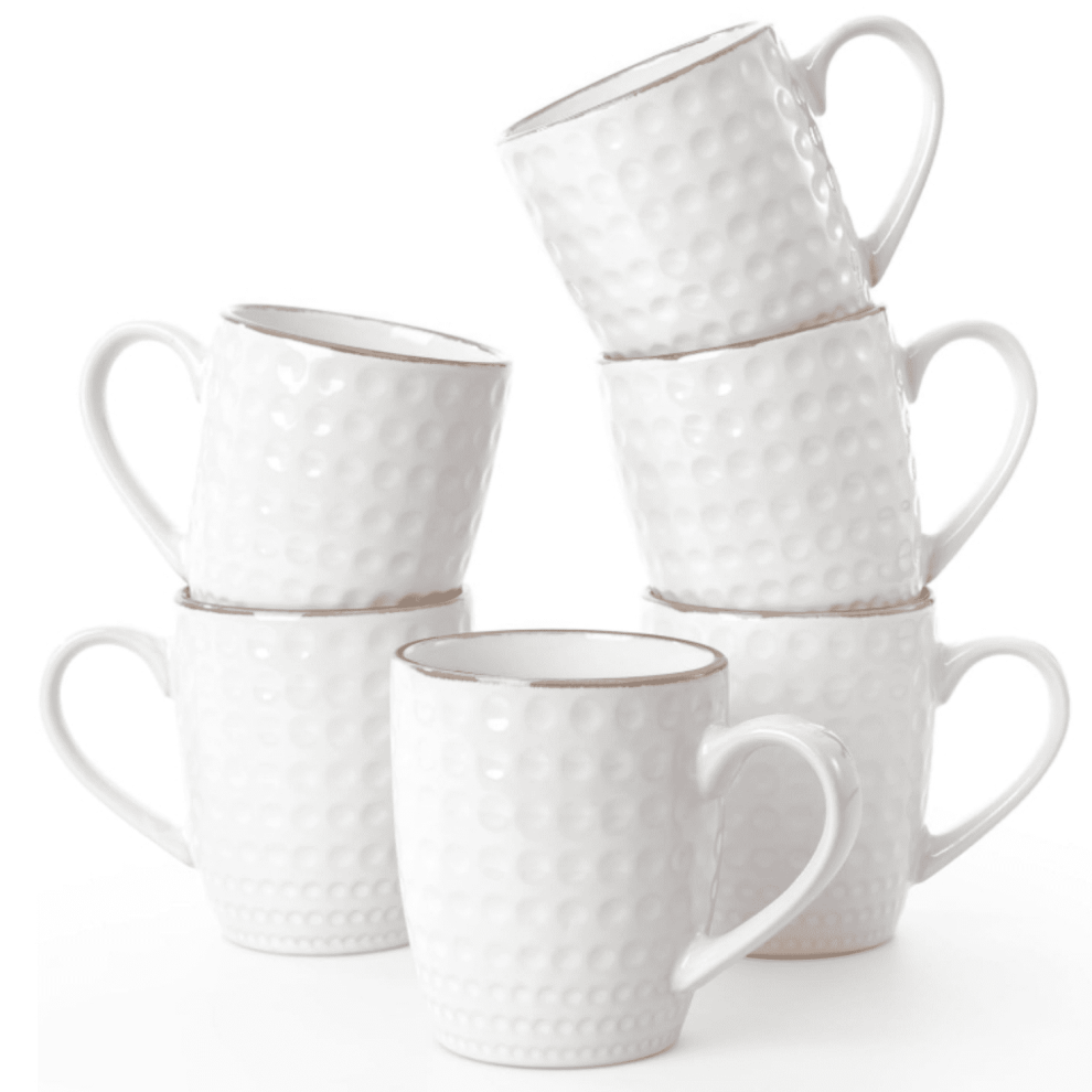 Coffee Mugs Sets for 6, 14 oz Mug Set, Coffee Cups with Handle for Coffee, Tea, Cocoa and Milk, Microwave and Dishwasher Safe, White Circle