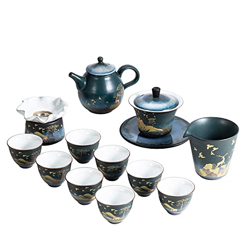 FBSHAD Ceramic Teacup Set Ink Porcelain Lu Sen Ceramic Tea Set Manual Flambe Cover Teacup Set Home Kungfu Tea Set Tea Pot Gaiwan Filter Chahai Tea Tray Coffee Set Tea Coffee Pot Cups