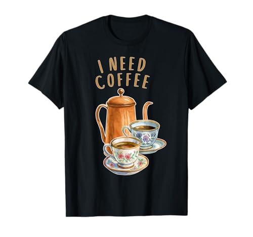 I Need Coffee Cute Watercolor Coffee Pot Lover Design T-Shirt