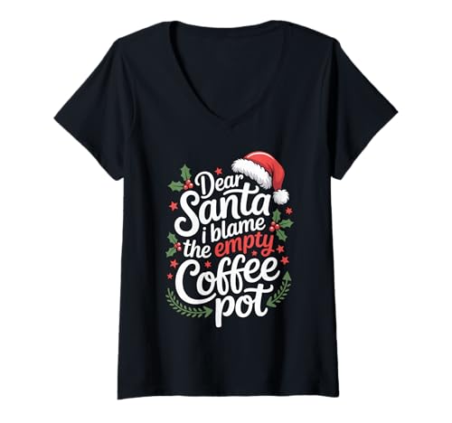 Womens Dear Santa I Blame The Empty Coffee Pot Coffee Lovers V-Neck T-Shirt