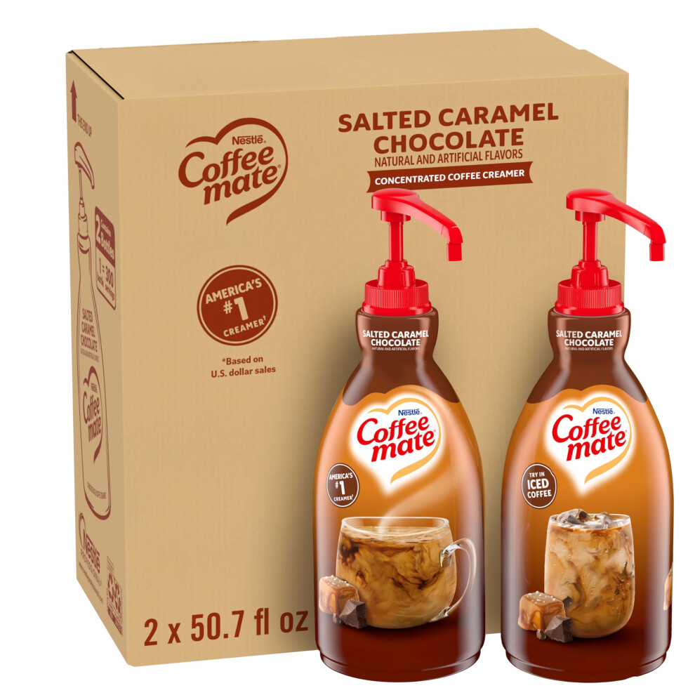 Coffee Mate Liquid Coffee Creamer Concentrate - Coffee Creamer with Pump in Salted Caramel Chocolate Flavour - Coffee Whitener - No Refrigeration
