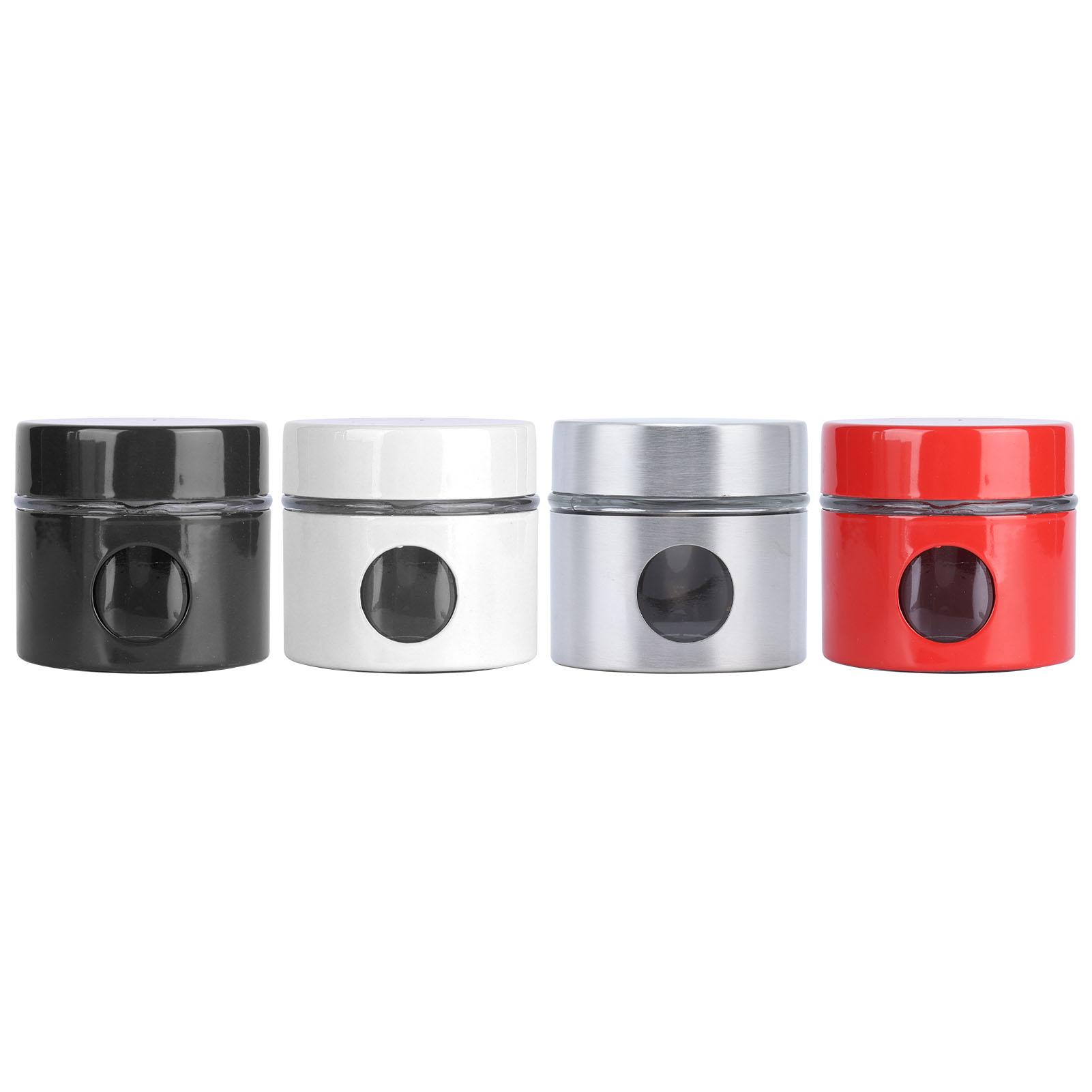 Stainless Steel 4pc Bread Bin Set Kitchen Tea Sugar Coffee Jar Bin Canister (Black)