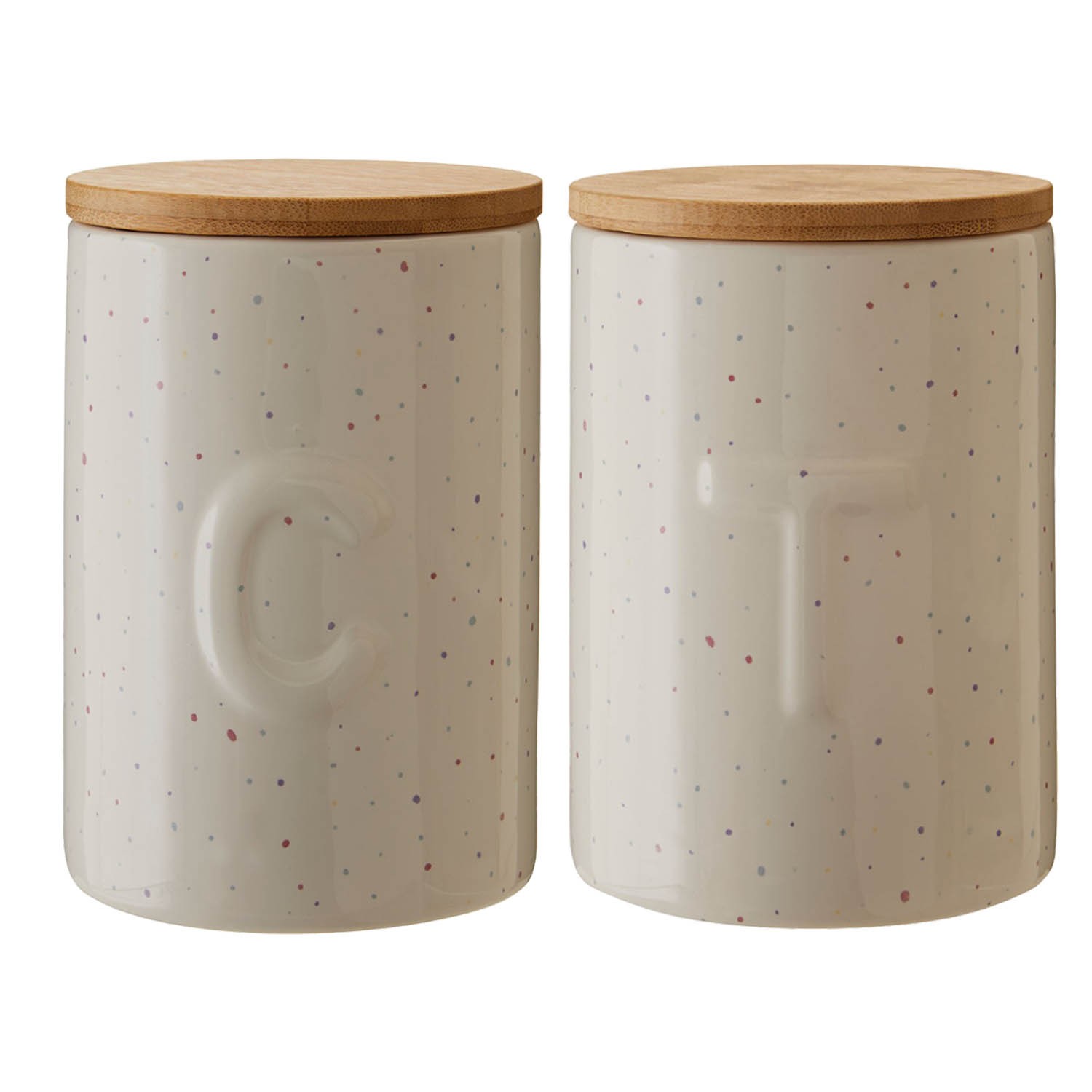 Fenwick Set of 2 780ml Dolomite Tea and Coffee Canister Jar Wooden Lid Speckle