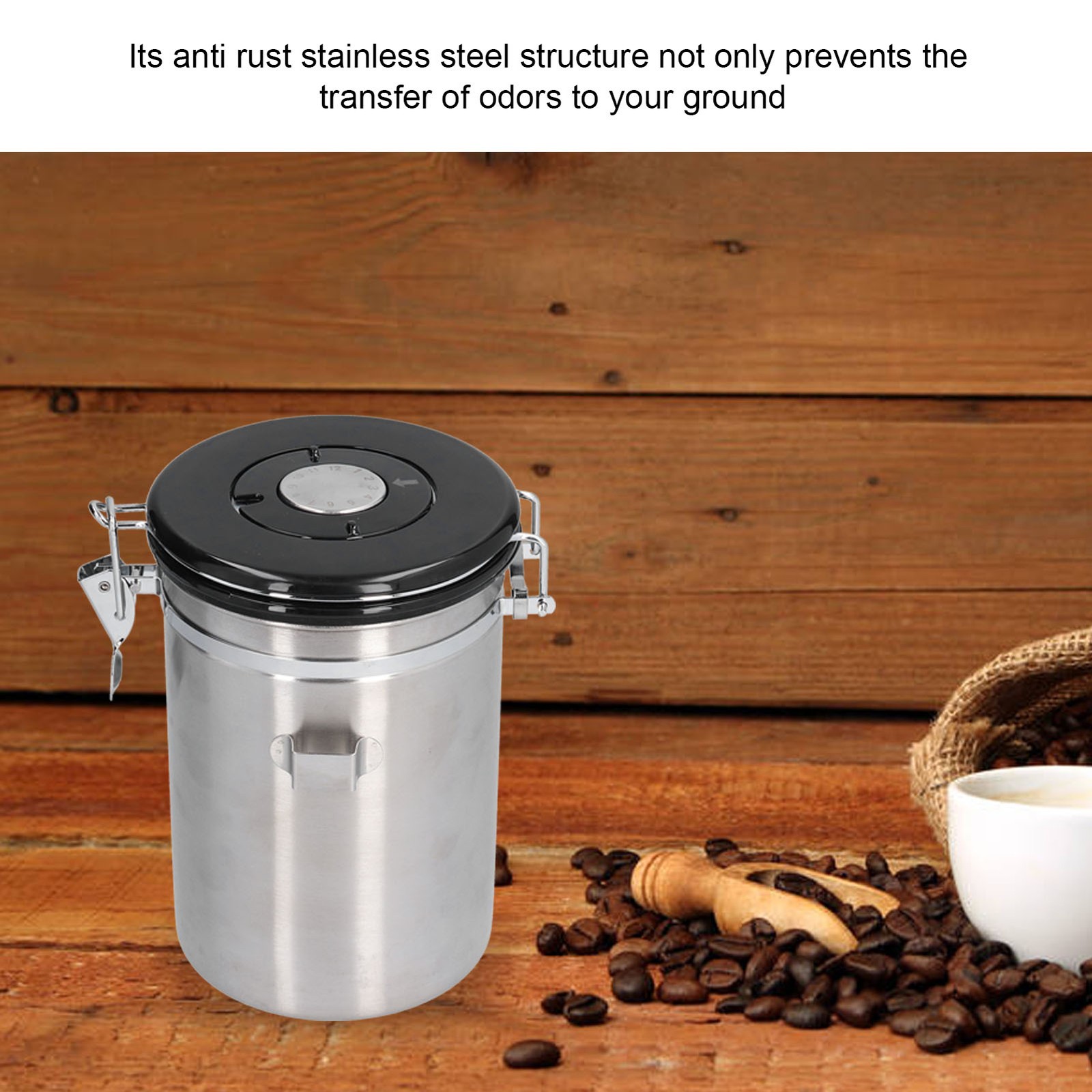 Stainless Steel Coffee Canisters W/Calendar Wheel Exhaustable Coffee Jar HG