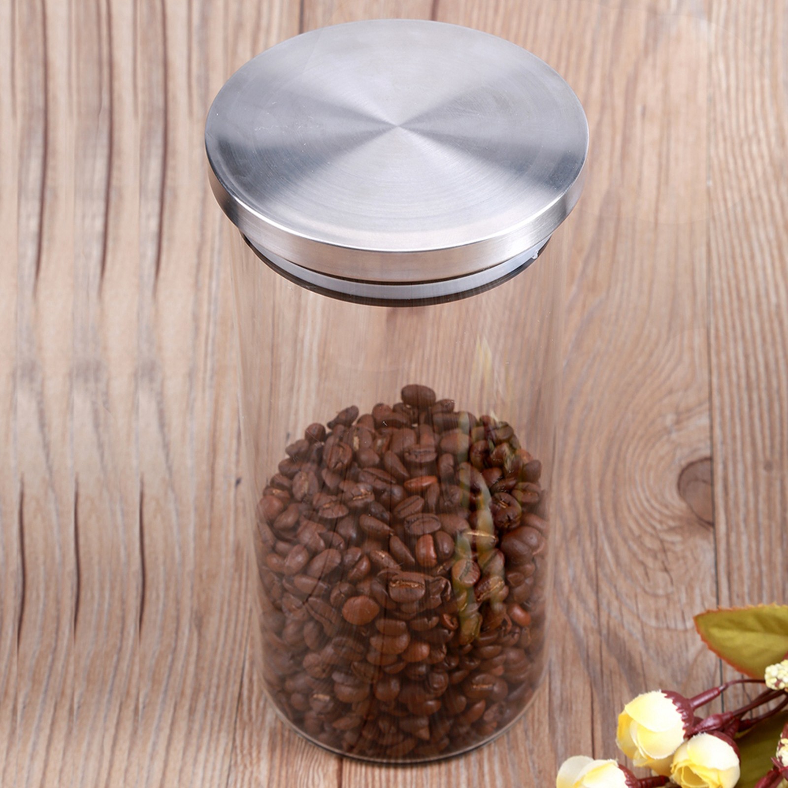 1000ml Glass Storage Jar Coffee Beans Kitchen Food Container Stainless Stee SG