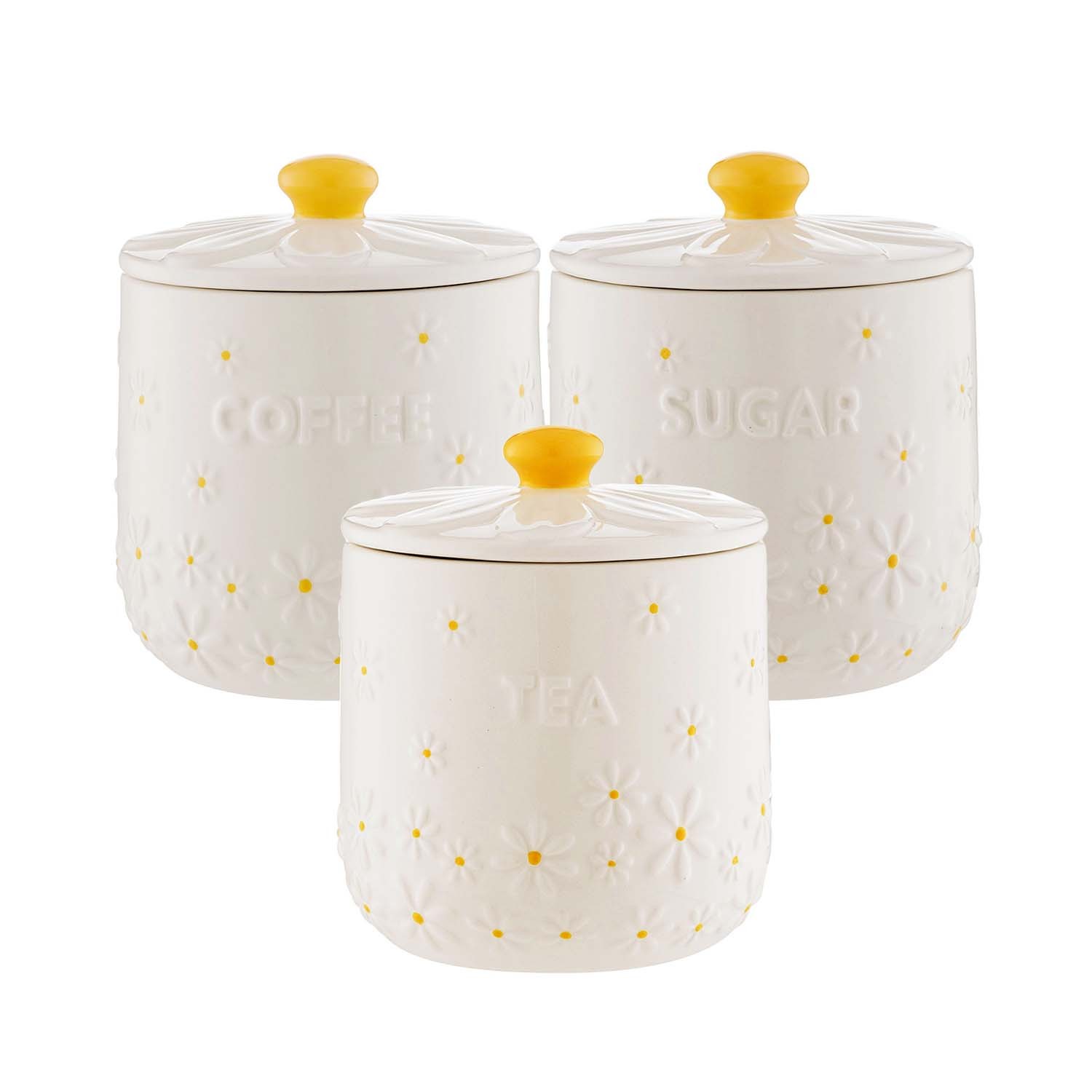 Tea Coffee Sugar Jar Set Hand-Painted Daisy 700ml Storage Containers Kitchen 3pc