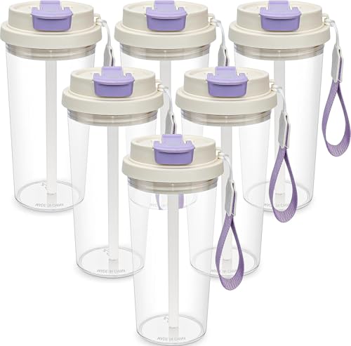 LYCN 6 Pack Plastic Water Bottles, 20 oz Clear Flip Top Sports Water Bottle Iced Coffee Glasses Mason Jar Cups with Lids and Handle for Juice Smoothie Soda Tea