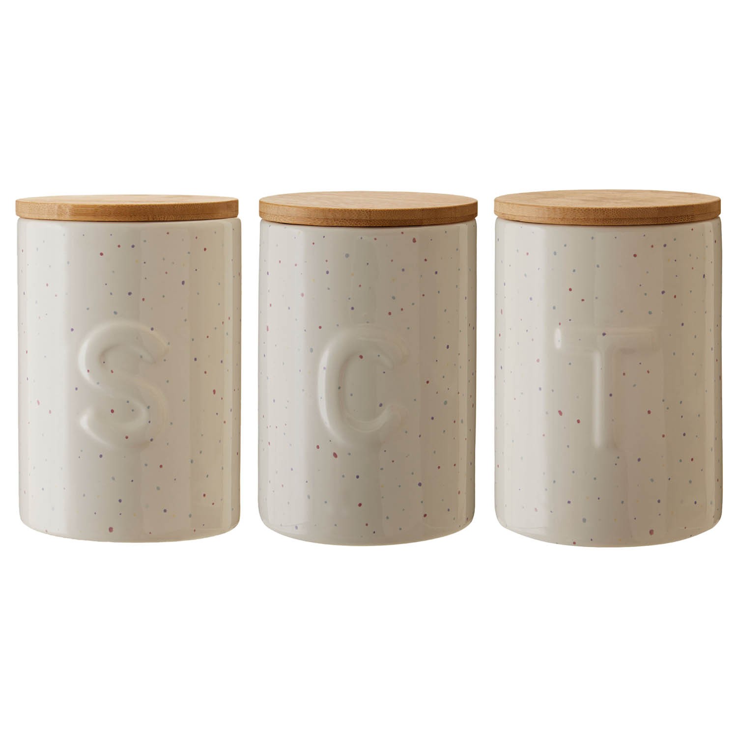 Fenwick Set of 3 780ml Dolomite Tea Sugar Coffee Canister Jar Wooden Lid Speckle