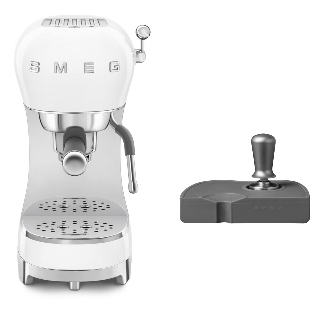 (White) Smeg ECF02 Espresso Machine + ECTS01 Coffee Tamper Bundle