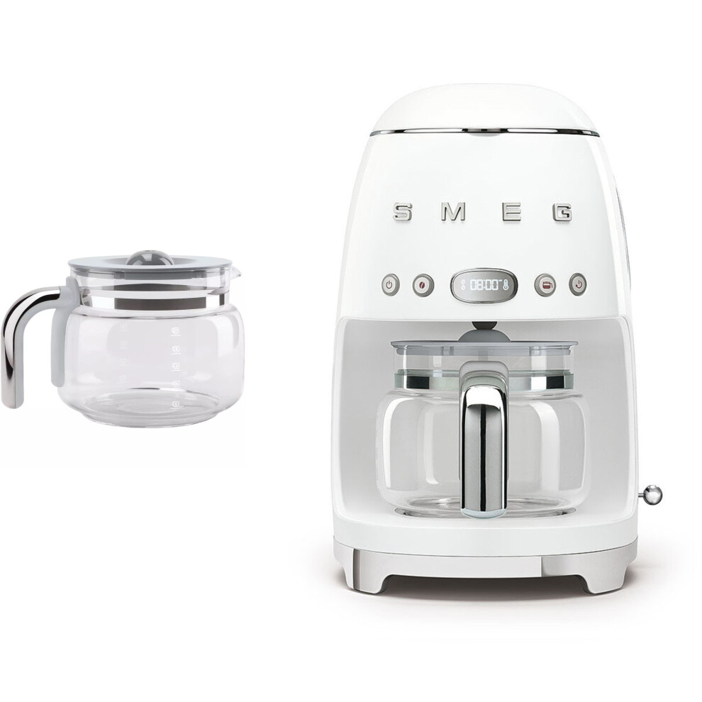 (White) Smeg DCF02 Drip Filter Coffee Machine +DCG01 Glass Carafe Spare Jug Bundle