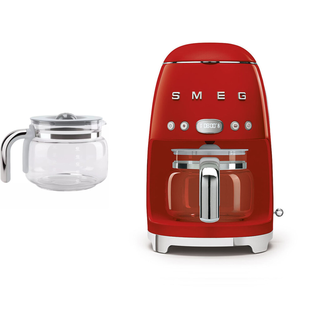 (Red) Smeg DCF02 Drip Filter Coffee Machine +DCG01 Glass Carafe Spare Jug Bundle