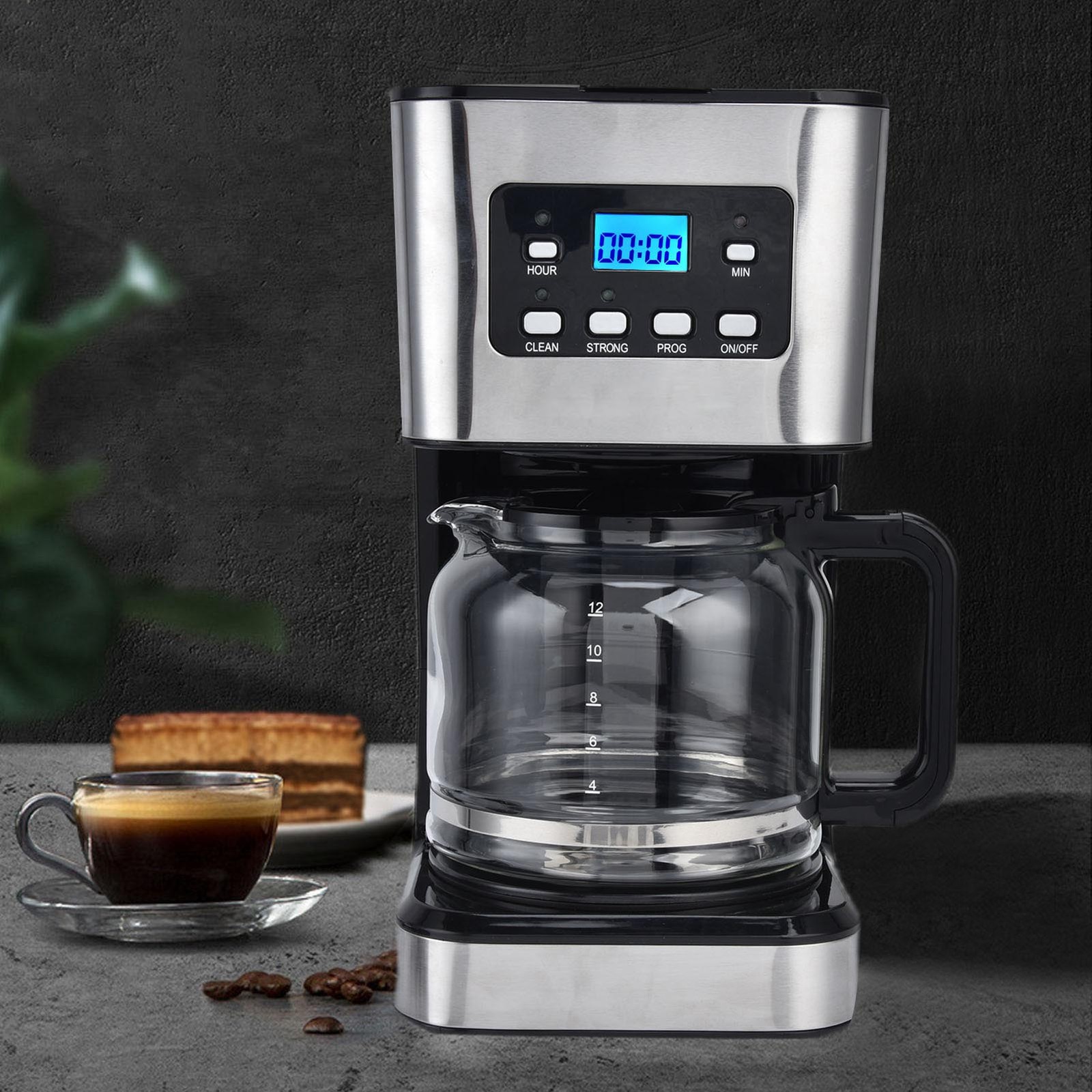 1.5L Drip Coffee Machine 12 Cup Coffee Maker With Timer Automatic Extraction UK