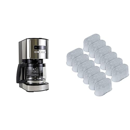Koolatron Drip Coffee Maker Machine 12-cup 1.8L Programmable Filter Coffee Machines with Timer Fast Brewing Technology Digital Display Silver+ Charcoal Water Filter Micromesh Fine Grain Charcoal White