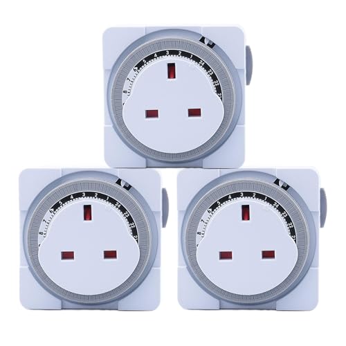 OHVBAEON 3PCS Mechanical Timer Socket Switch Energy Saving Compact UK Timers Plug Socket 24 Hour Energy Saving Compact UK Plug for Indoor Lights, Lamp, Coffee Maker, Water Heater And Home Appliances