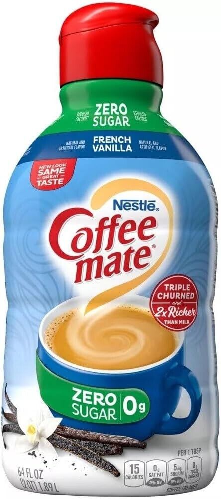 Nestle Coffee Mate French Vanilla Zero Sugar Liquid Coffee Creamer 64oz (1.89L)