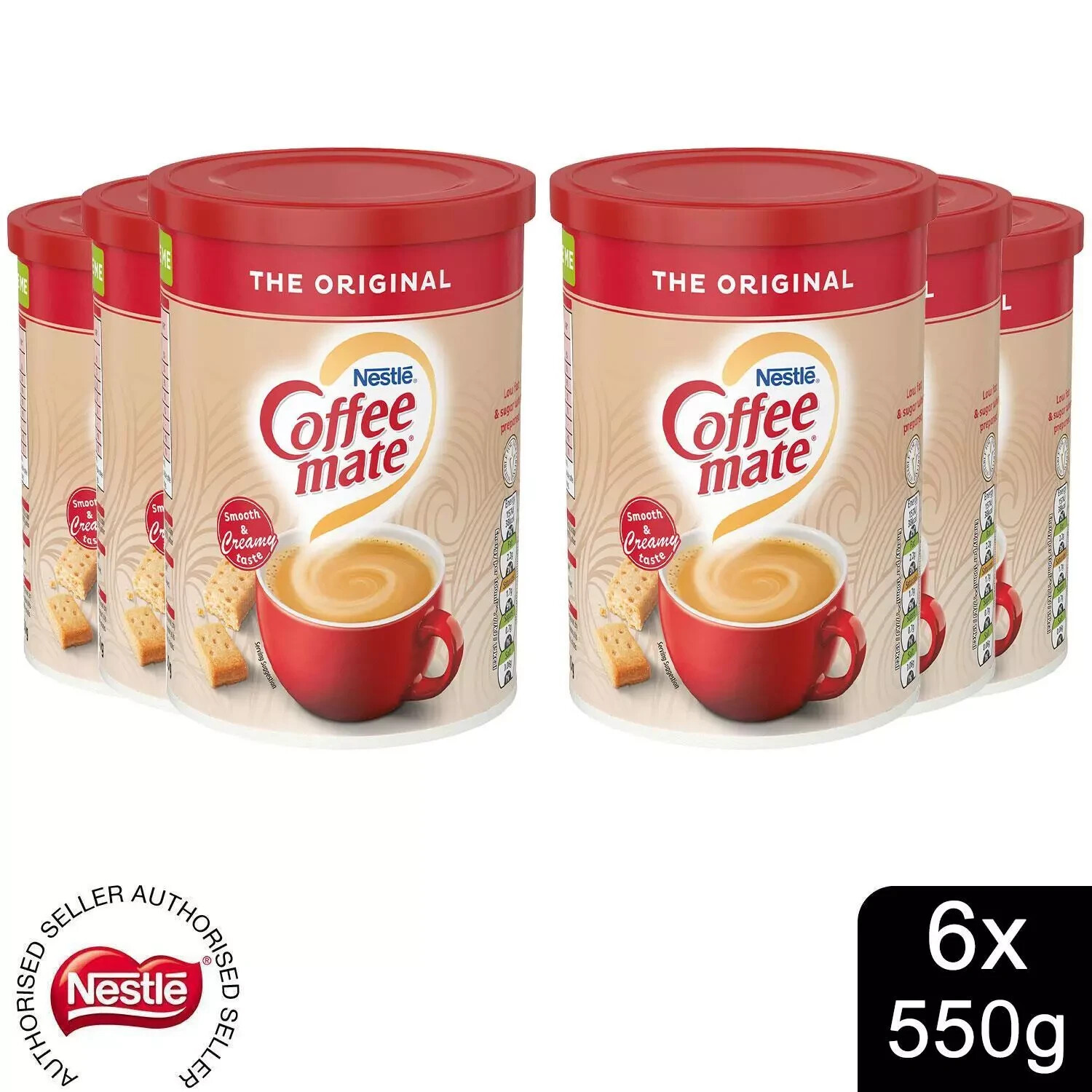 Nestle Coffee Mate Original 6 x 550g Coffee Whitener Tub for Smooth & Creamy F&F
