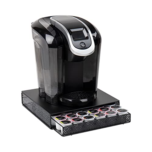 Mind Reader Network Collection, Single Serve Coffee Pod Drawer, 36 Coffee Pod Capacity, Coffee Machine Base, Solid Metal Top with Decorative Mesh Drawer, 9.5"L x 12.25"W x 2.5"H, Black