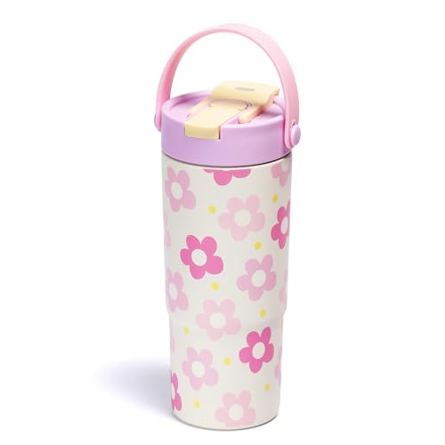 pluseight Stainless Steel Tumbler with Straw, 660ml/22oz Tumbler with Leak Proof 2-in-1 Lid, Reusable Double Walled Water Bottle, Portable Coffee Travel Mug, Fit in Cup Holder (Flower)
