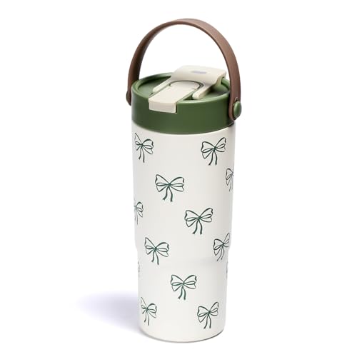 pluseight Stainless Steel Tumbler with Straw, 660ml/22oz Tumbler with Leak Proof 2-in-1 Lid, Reusable Double Walled Water Bottle, Portable Coffee Travel Mug, Fit in Cup Holder (Green Bow Tie)