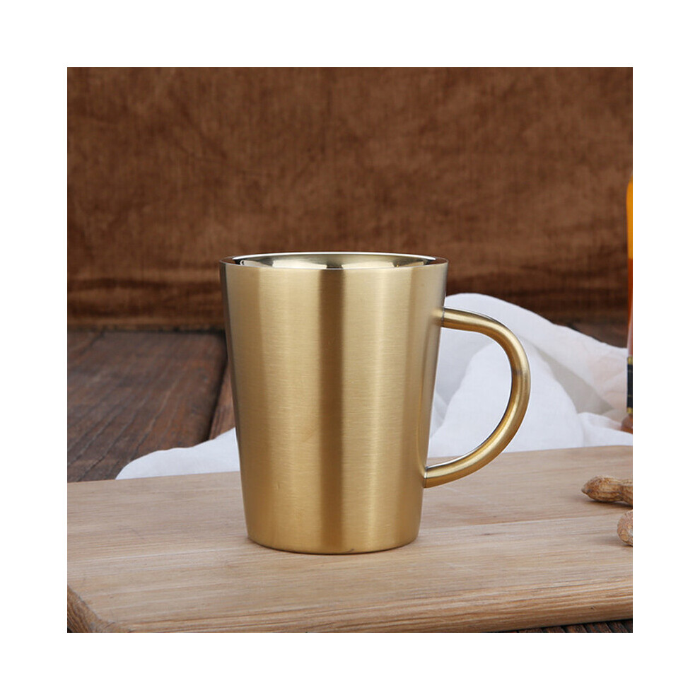 (a-gold) Double Wall Stainless Steel Coffee Mug Portable Cup Travel Tumbler Coffee Jug Milk Tea Cups Double Office Water Mugs