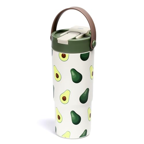 pluseight Stainless Steel Tumbler with Straw, 660ml/22oz Tumbler with Leak Proof 2-in-1 Lid, Reusable Double Walled Water Bottle, Portable Coffee Travel Mug, Fit in Cup Holder (Avocado)