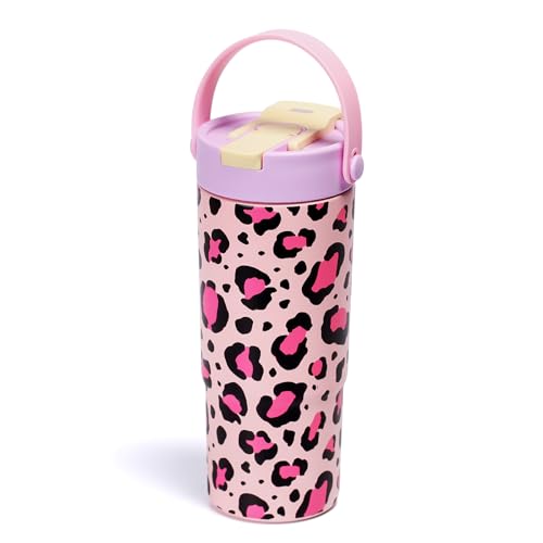 pluseight Stainless Steel Tumbler with Straw, 660ml/22oz Tumbler with Leak Proof 2-in-1 Lid, Reusable Double Walled Water Bottle, Portable Coffee Travel Mug, Fit in Cup Holder (Leopard Print)
