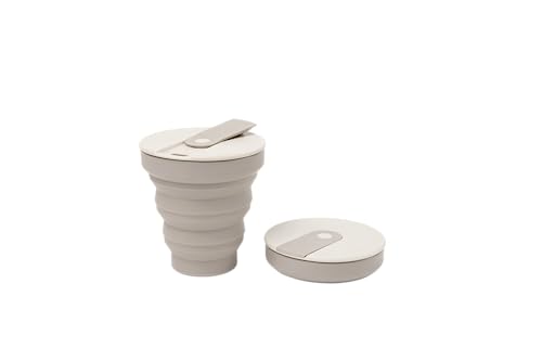 HUNU Collapsible Coffee Cup with Lid - BPA Free Foldable Silicone Espresso Cup for Hot Drinks - Leakproof Reusable Pocket Coffee Mug - Portable Travel Mug or Camping Cup - 12OZ (Warm Grey)