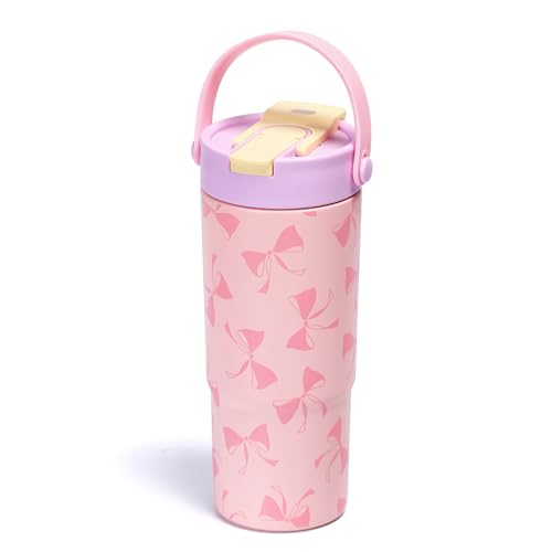 pluseight Stainless Steel Tumbler with Straw, 660ml/22oz Tumbler with Leak Proof 2-in-1 Lid, Reusable Double Walled Water Bottle, Portable Coffee Travel Mug, Fit in Cup Holder (Pink Bow Tie)