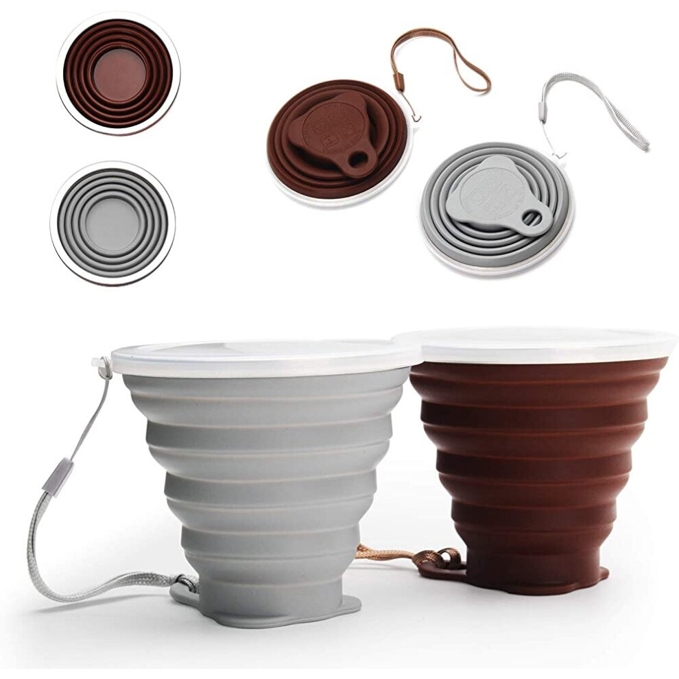 Portable Coffee Mug. Lightweight Travel Cup.FDA and BPA Free Portable Coffee Mug.Larger Capacity 270ML Foldable Silicone Travel Mug. 2 rooms