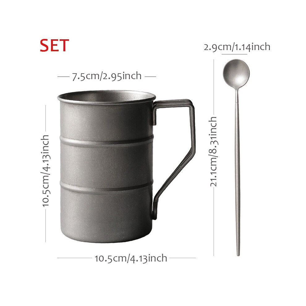 (a-Set) Old Style Stainless Steel Beer Mug Outdoor Camping Juice Portable Coffee Mug Handheld Drink Cup Retro Spoon Photography Props